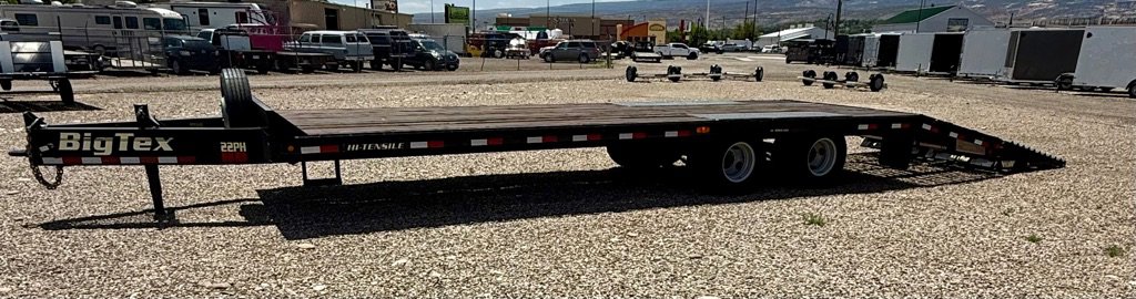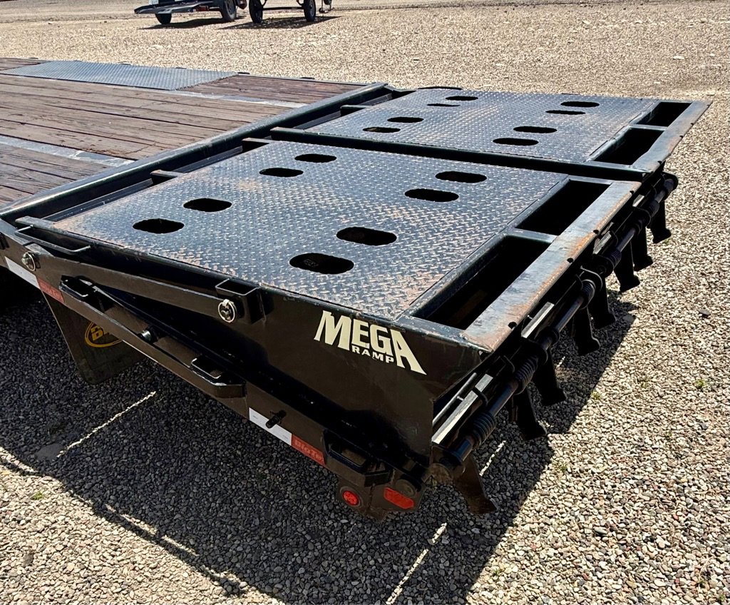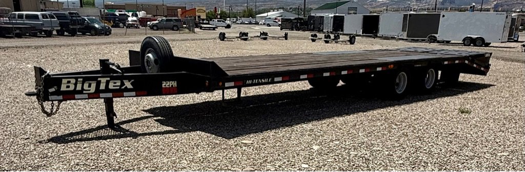 2017 Big Tex , Tandem Dual , 12k Axles ,Deckover , Monster Ramps , Pintle Hitch, Rub Rail , Front Step , Chain Tray , New 14 Ply Tires ,Heavy Duty Drop Leg Jack , 12” I beam frame , Mud Flaps , Brakes on Both Axles , Spare Tire Mount, Spare Tire.