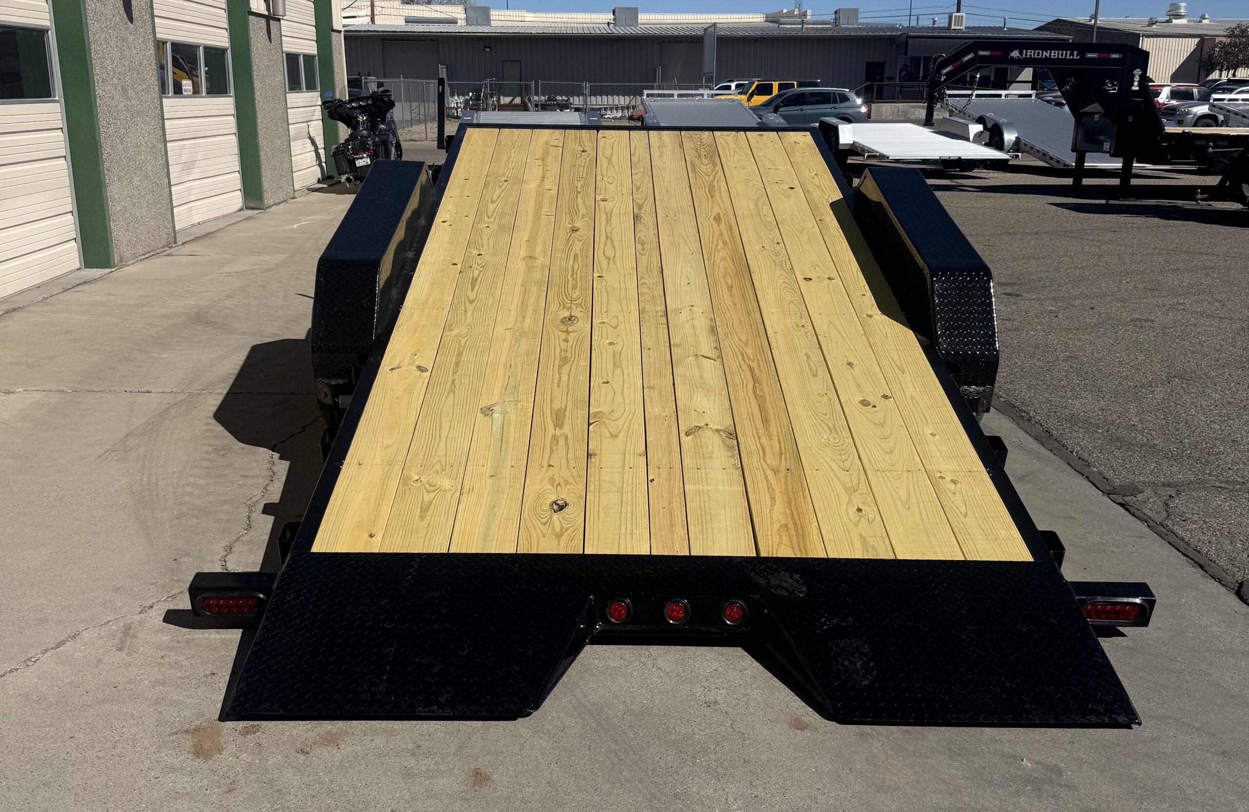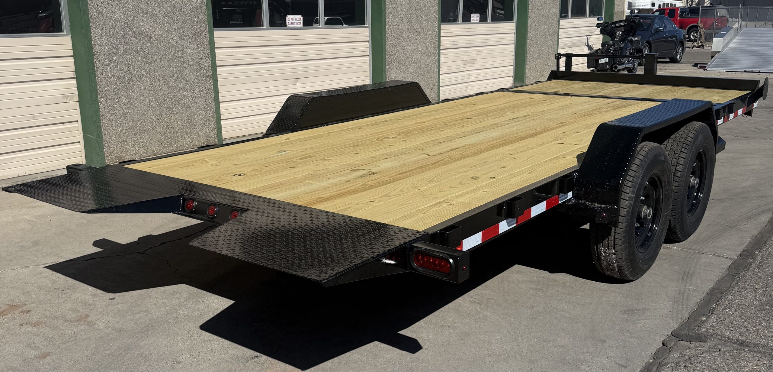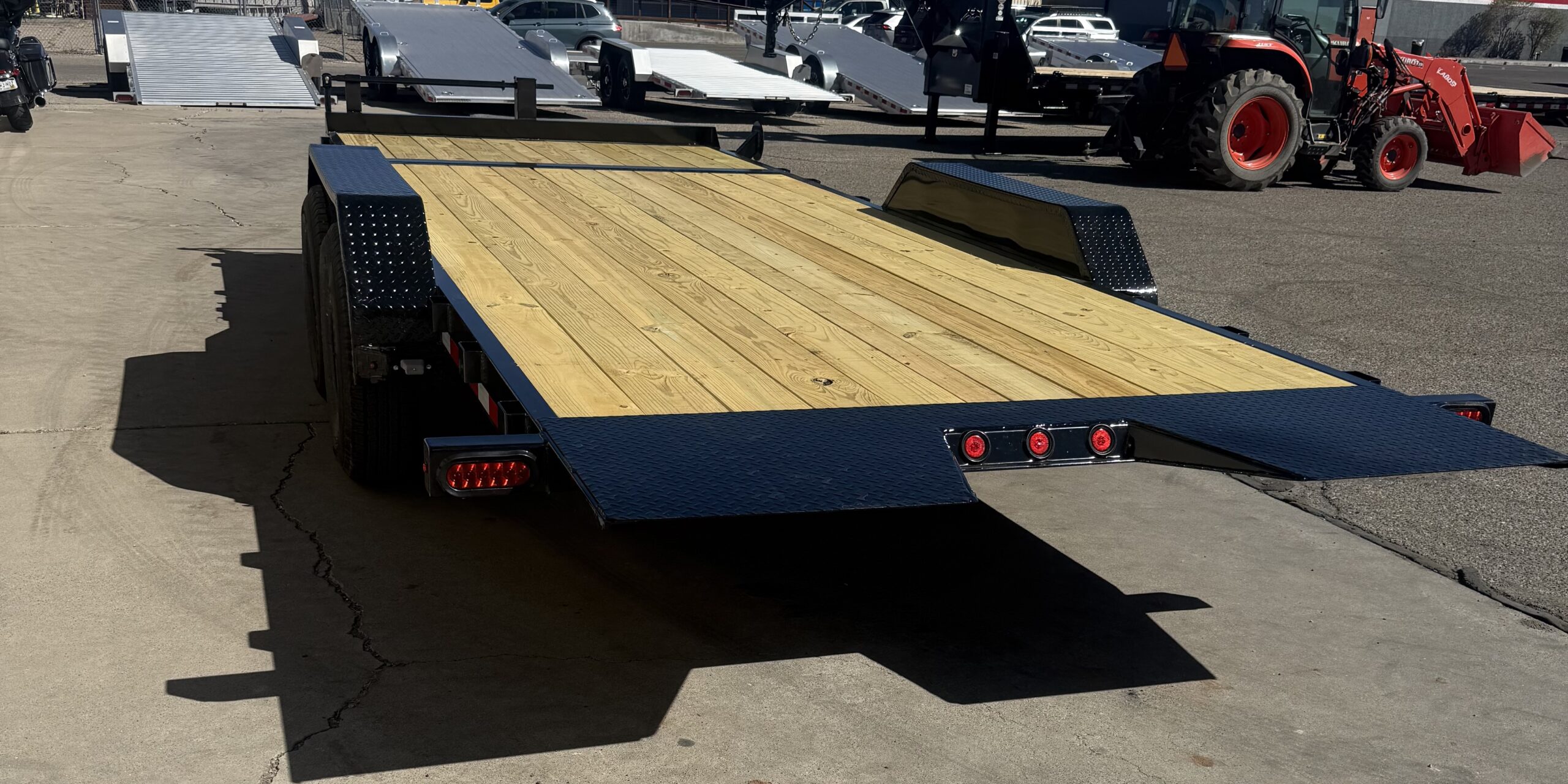 14K Rated, 16′ Tilt + 4′ Stationary Deck, All LED Lighting, Powder Coated, Adjustable Coupler, D-Rings, Locking Box Under Neck, Heavy Duty Diamond Plate Fenders, Heavy Duty Drop Leg Tongue Jack, 16” Radial Tires, Solid Wheels, Electric Brakes On All Wheels, Spare Tire Mount, Stake Pockets, Reflective DOT Marking Tape.