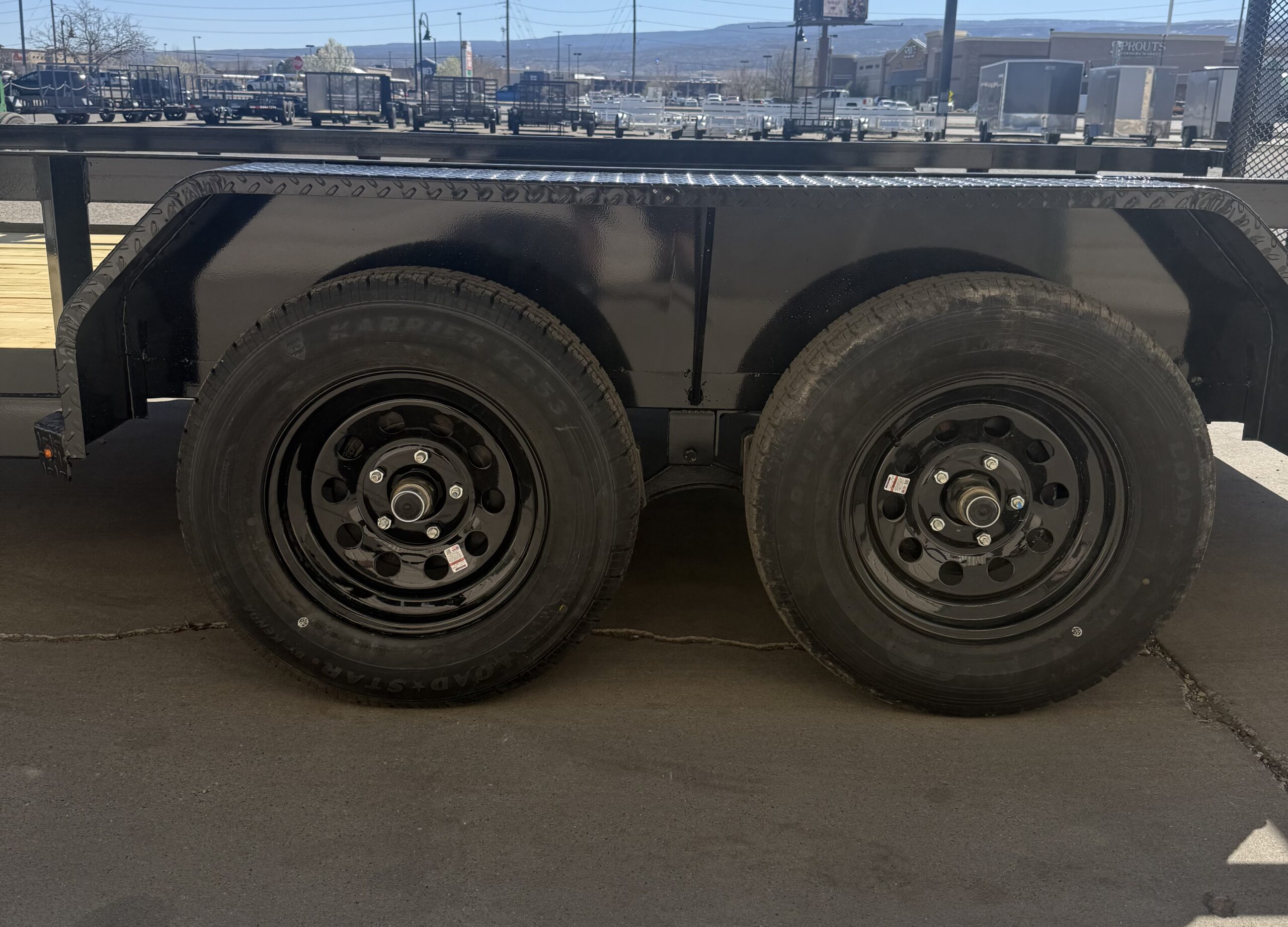 7K Rated, 48 Rear Ramp Gate, Spare Tire Carrier, All LED Lighting, Stake Pockets, Top Railing, Tongue Jack, Bulldog Style Coupler, Electric Brakes On All Wheels, 15 Radial Tires.