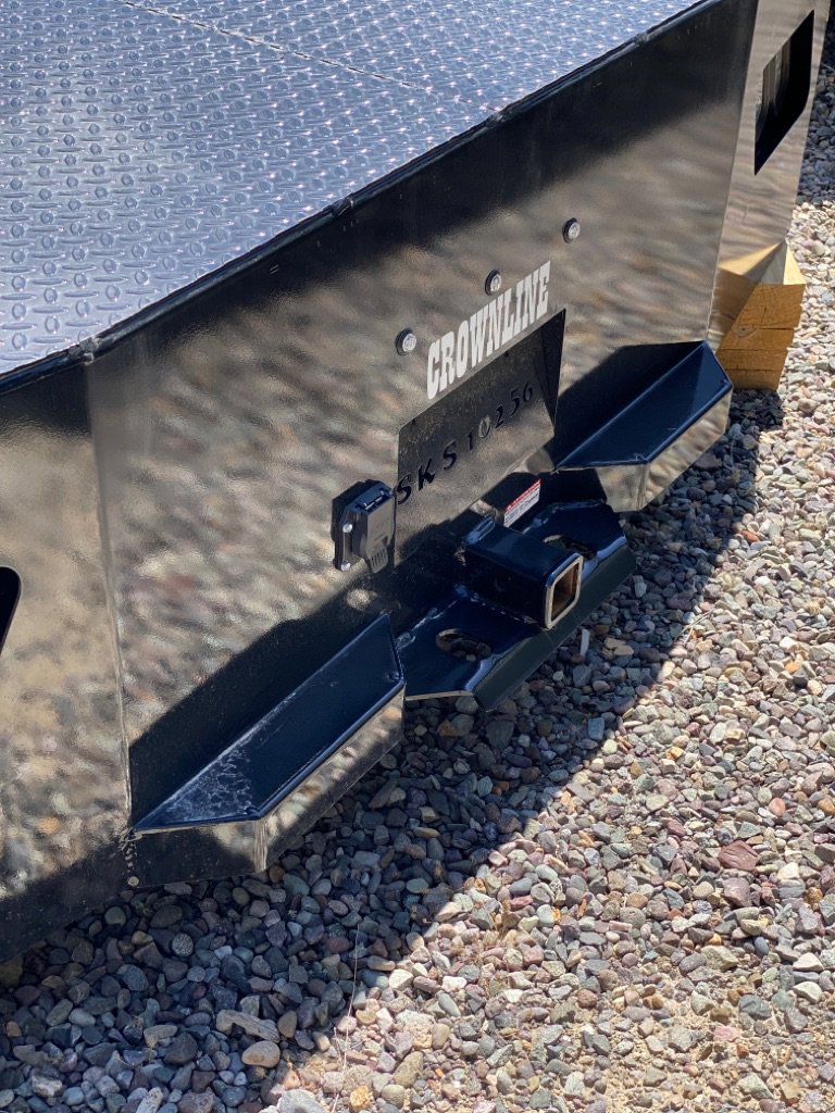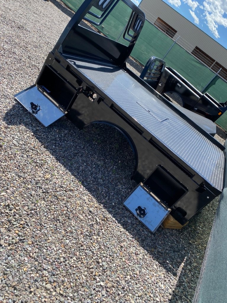 Features: This Crownline Skirted Bed Is Built To Fit a Long Bed Single Wheel Truck With a 56 Cab To Axle Comes Equipped With a Steel Structural Frame, 1/8 Steel Diamond Plate Floor, and 4 Channel Runners, Finished With a Black Powder Coat. It is Designed With An Angled Fuel Filler Neck, is DEF Ready, And Has a Class 4 Receiver Hitch Readiness. The Bed Also Features a 30K Rated Built-In Gooseneck Well With a Welded Ball, a Skirted Rear Bumper, and Smooth Flare Fenders, a Steel Tube Headache Rack With Cross Bars and Lights, and Four Built-in Toolboxes.