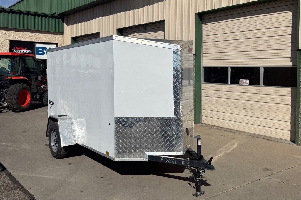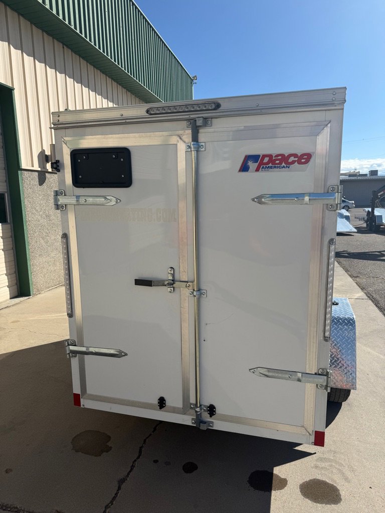 PACE 5’X10′ SINGLE AXLE ENCLOSED TRAILER V-Nose, Cargo Style Rear Door, All LED Lighting, ATP Stone Guard, Side Wall Flow Through Vents, 15” Radial Tires, 3500# Axle, Dry Max Interior, 12 Volt Dome Lights. Empty Weight 1021
