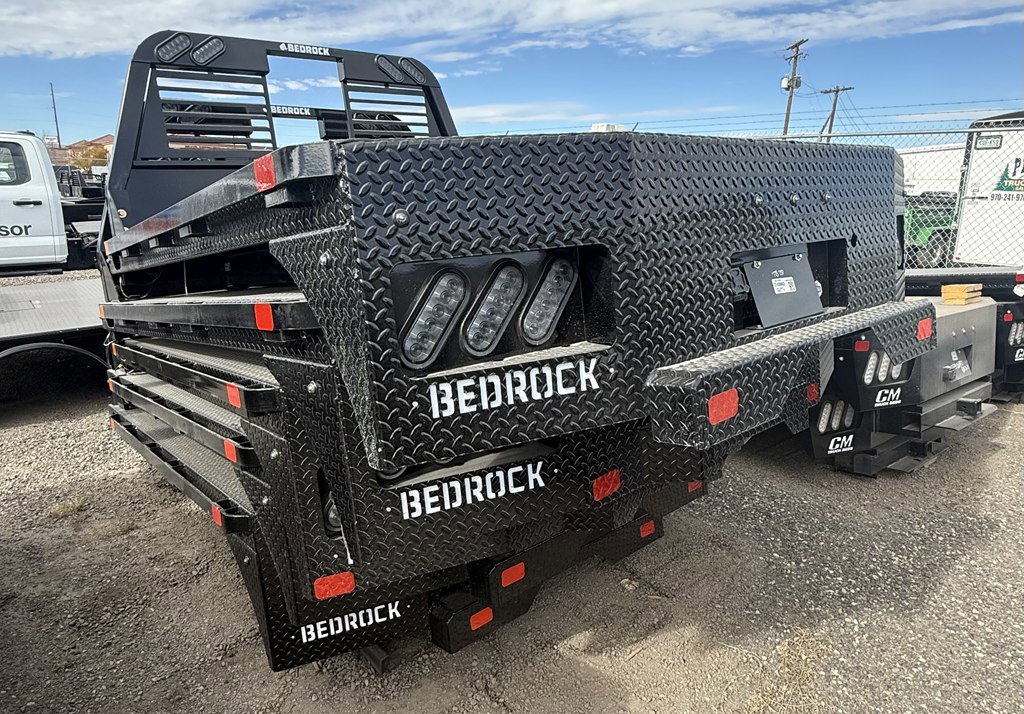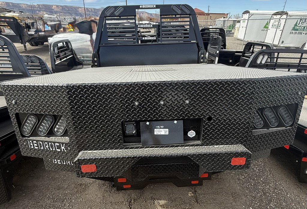 Diamond Series Rub Rail Flatbed, 2017 & Newer Ford Super Duty Single Wheel Long Bed, Powder Coating, Corrosion & UV Resistant, Glossy polyester finish with industry-leading adhesion & longevity, Lifetime LED lights that offer longevity & great visibility, DOT-approved, Back-up lights in headache rack can double as working lights, 7-way & 4-way trailer wiring plug, Trailer wiring plug recessed next to license plate, Bed is pre-wired with sealed wiring harnesses to protect from moisture & prevent damage, Gooseneck Hitch – B&W 2 5/16” welded ball rated at 30,000 lbs, Uses Factory Receiver Hitch.