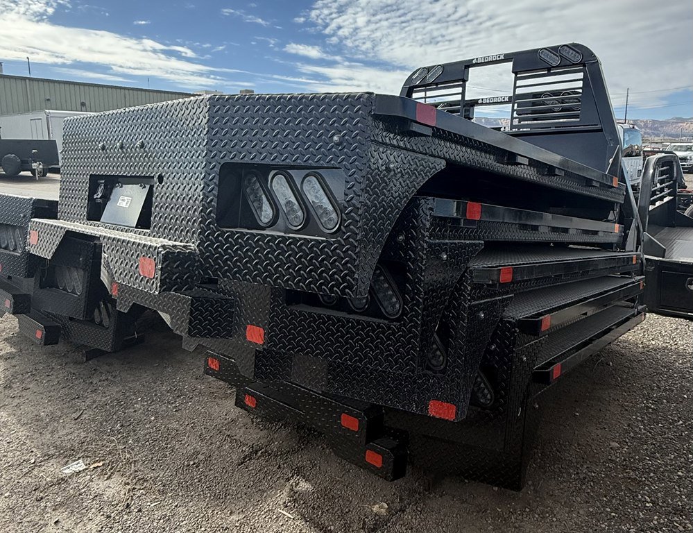 Diamond Series Rub Rail Flatbed, 2020 – Newer GM 2500/3500 Single Wheel Long Bed, Powder Coating, Corrosion & UV Resistant, Glossy polyester finish with industry-leading adhesion & longevity, Lifetime LED lights that offer longevity & great visibility, DOT-approved, Back-up lights in headache rack can double as working lights, 7-way & 4-way trailer wiring plug, Trailer wiring plug recessed next to license plate, Bed is pre-wired with sealed wiring harnesses to protect from moisture & prevent damage, Gooseneck Hitch – B&W 2 5/16” welded ball rated at 30,000 lbs, Uses Factory Receiver Hitch.
