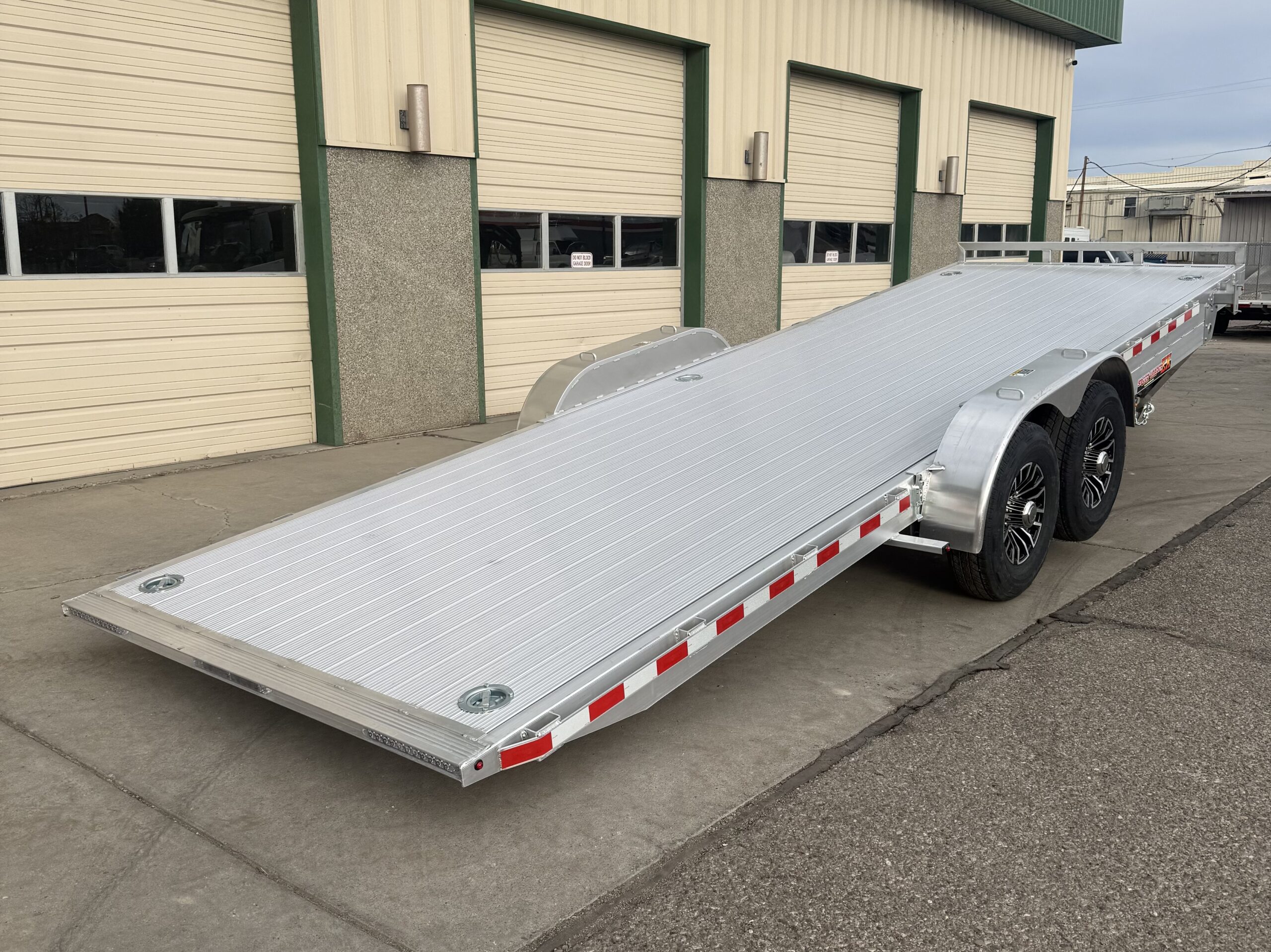 Features: H&H 82”X24′ ALUMINUM POWER TILT TRAILER14K Rated, 16” Radial Tires, Electric Brakes On All Wheels, Extruded Aluminum Decking, All LED Lighting, Swivel Recessed D-Rings, Stake Pockets, Adjustable Coupler, Custom Aluminum Wheels, Dual ATP Tongue Boxes, Solar Charger, Front Bump Railing, Drop Leg Tongue Jack, Spare Tire Mount, Reflective DOT Marking Tape, Curb Weight 2450.