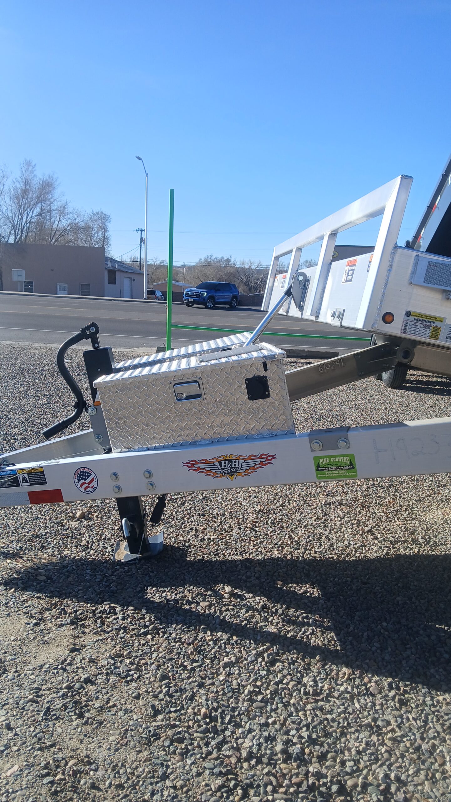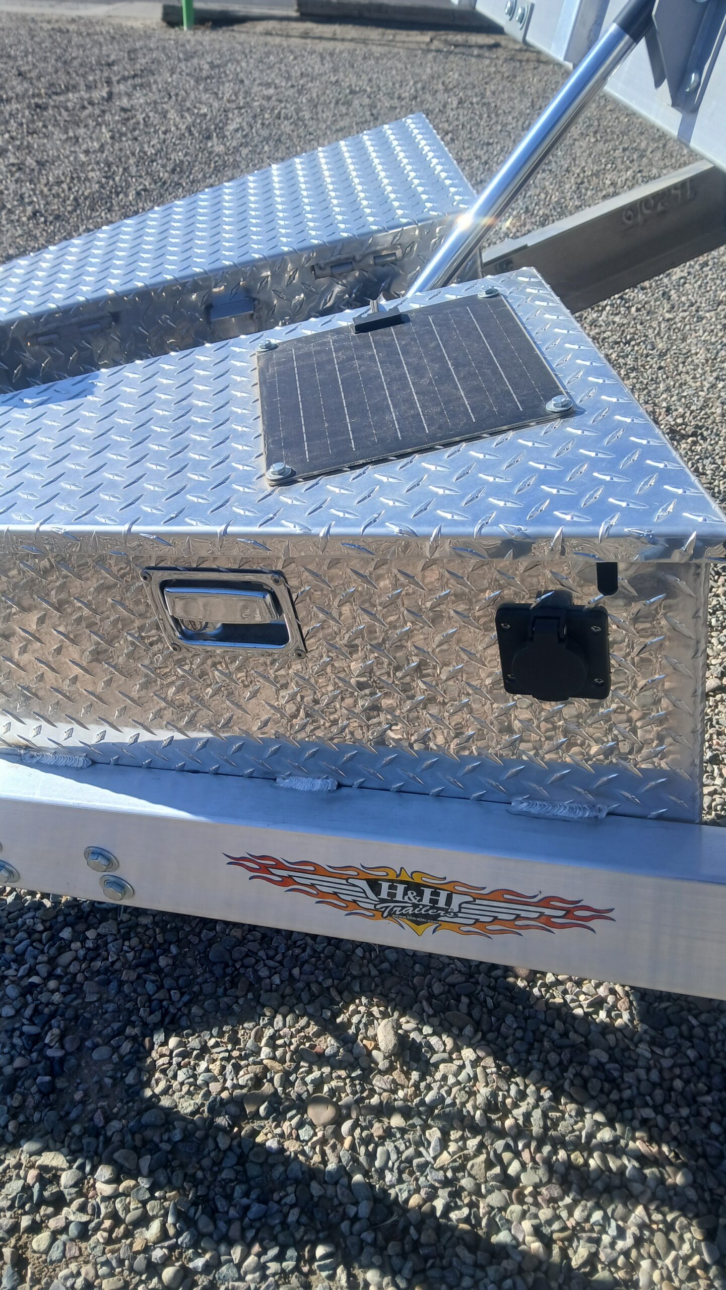 6.8’X20’, Aluminum, Electric Tilt Speed Loader, 12K Drop Leg Jack, Deck Extruder, UPG Solar Battery Charger, Tie Downs, Recessed Swivel D-Ring (Each Corner), Spare Tire Mount, Steel Winch Mount, Powdered Coated Plate