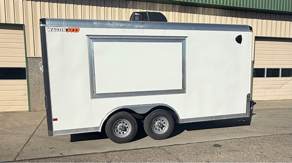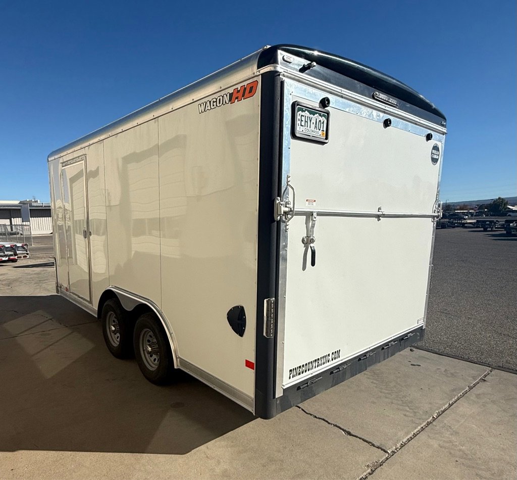 2025 Wells Cargo Wagon HD 8.5×16 dual 5200# Electric Brake Axles, Rubber Torsion Suspension , 15′ Radial Tires .Rouned Roof , AC , Shore Power Plug , Heavy Duty Ramp Door, Side Entry Man Door, RV Latch, Heavy Duty Adjustable Coupler , Heavy Duty Jack , Polished Fenderettes, Greasable Hinges On Rear Door. LED Lights. 7 Way RV PLug. 110 Package, Bonded Smooth Sides