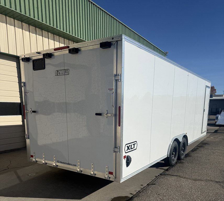 2026 EZ HAULER 8.5X24′ XLT PRO SERIES ENCLOSED TRAILER All Aluminum Construction, 24 Inch Diamond Plate Stone Guard, 36 Inch V-nose , 2 -5,200 lb Axles, Elite Escape Door, Curbside Side Door, Cable Assisted Ramp Door W/Ramp Extension, 4-Dring Tie Downs, 2-5/16 Coupler, 16 On Center Crossmembers On Floor/ Wall and Ceiling, 3/4 Inch Water Resistant Decking, Screwless .030 bonded Sides