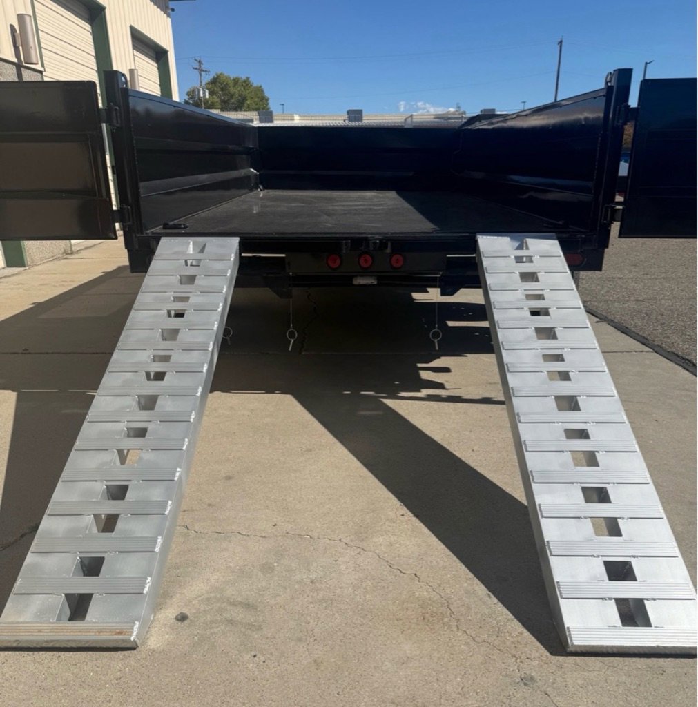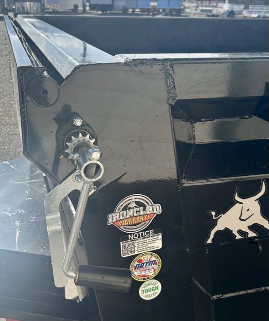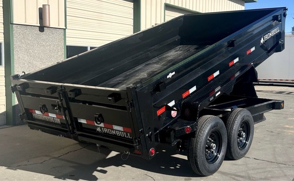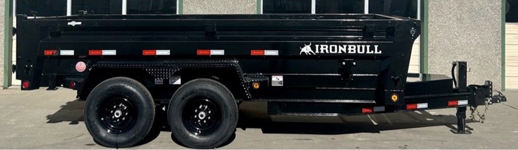 IRONBULL 83”X14′ DUMP TRAILER 14K Rated, 24”Tall Side Walls, 7 Gauge Floor, Slide Out **ALUMINUM RAMPS**Ramps, D-Rings, Roll Up Tarp Kit, All LED Lighting, Heavy Duty Diamond Plate Fenders, Adjustable Coupler, 16” Radial Tires, Electric Brakes On All Wheels, Scissor Style Hoist, Spare Tire Carrier, 3 Way Combo Spreader Gate, Powder Coated, Heavy Duty Spring Loaded Jack, Locking Box, Plug In Wall Charger, Reflective DOT Marking Tape, Iron Clad Warranty. DRY WEIGHT: 5038
