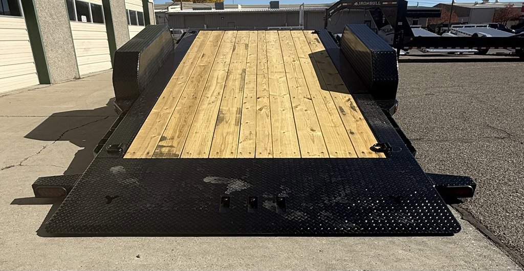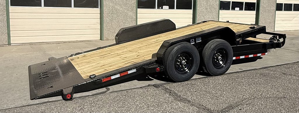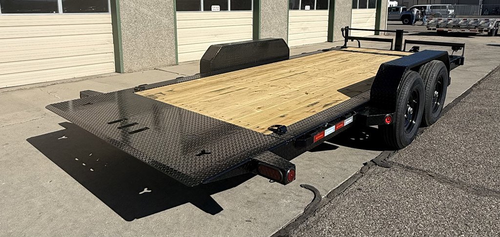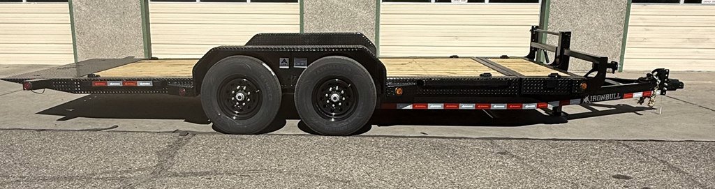 14K Rated, 16′ Tilt + 2′ Stationary Deck, Powder Coated, All LED Lighting, Reflective DOT Marking Tape, 16” Radial Tires, Electric Brakes On All Wheels, Iron Clad Warranty, D-Rings, Adjustable Coupler, Torsion Axles, Removable Diamond Plate Fenders, Spring Loaded Drop Leg Jack, Spare Tire Carrier. Empty Weight 2850