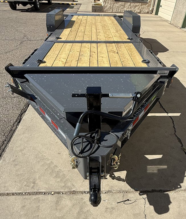 Ironbull 22′ Gravity Tilt Trailer, 14k Rated , 8 I beam Frame 2 5/16 Adjustable Couple, 10 k Rated Spring Loaded Jack, Treated Wood Floor,Chain Box,Weld on D rings, Spare Tire Mount, Drive Over Fenders, 16 Tilt , 6′ Stationary deck, 10 ply Tires Iron Clad Warranty
