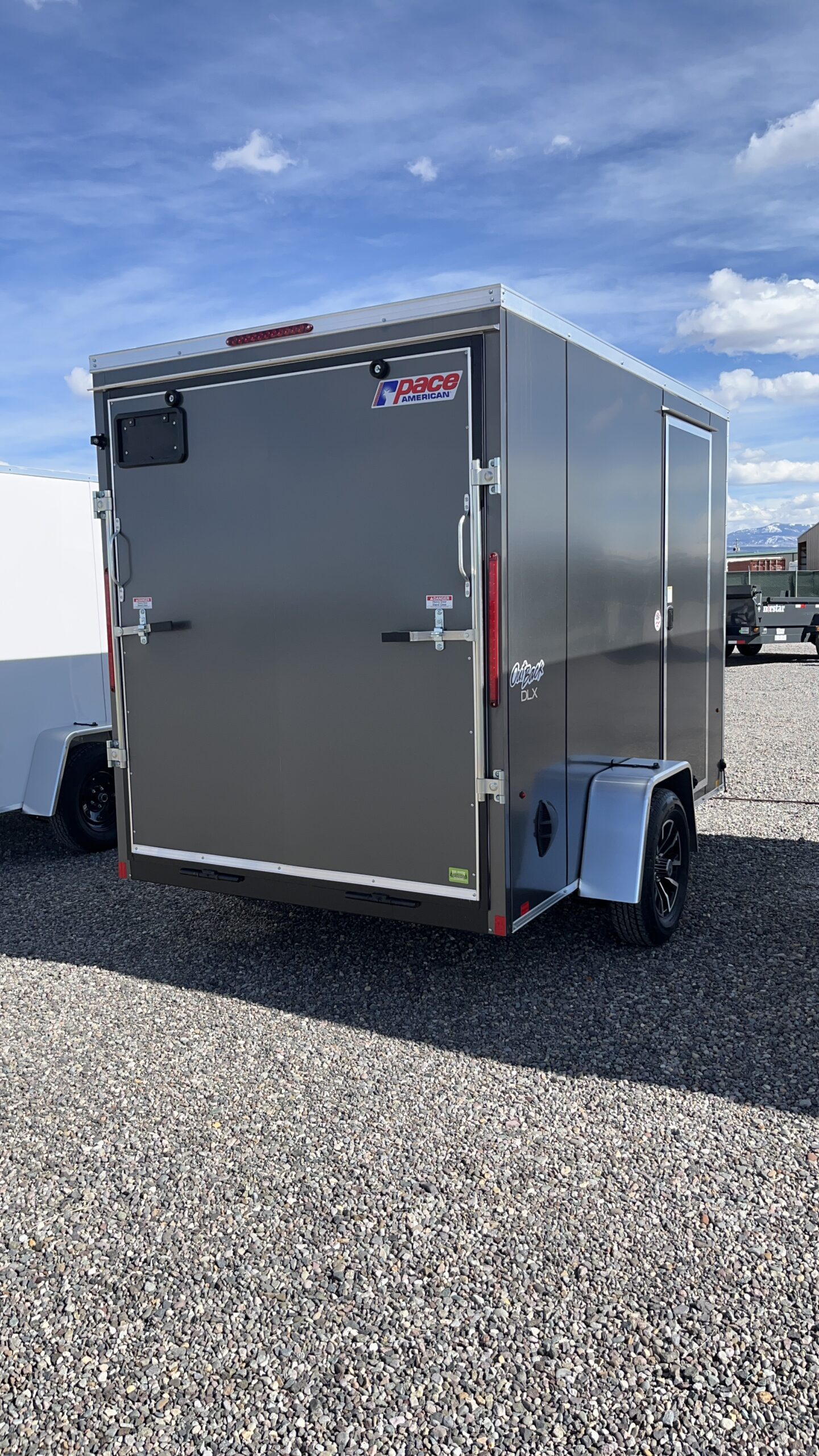 2026 Pace 6’x10′ Single Axle Enclosed Trailer, 6-1/2′ Interior Height, Aluminum Wheels, Side Wall Flow Through Vents, 12-Volt Interior Light, Cable Assisted Rear Ramp Door, Side Access Door, 3500 pound Axle, 15 Radial Tires, All LED Lighting, Aluminum Tread Plate Stone Guard.