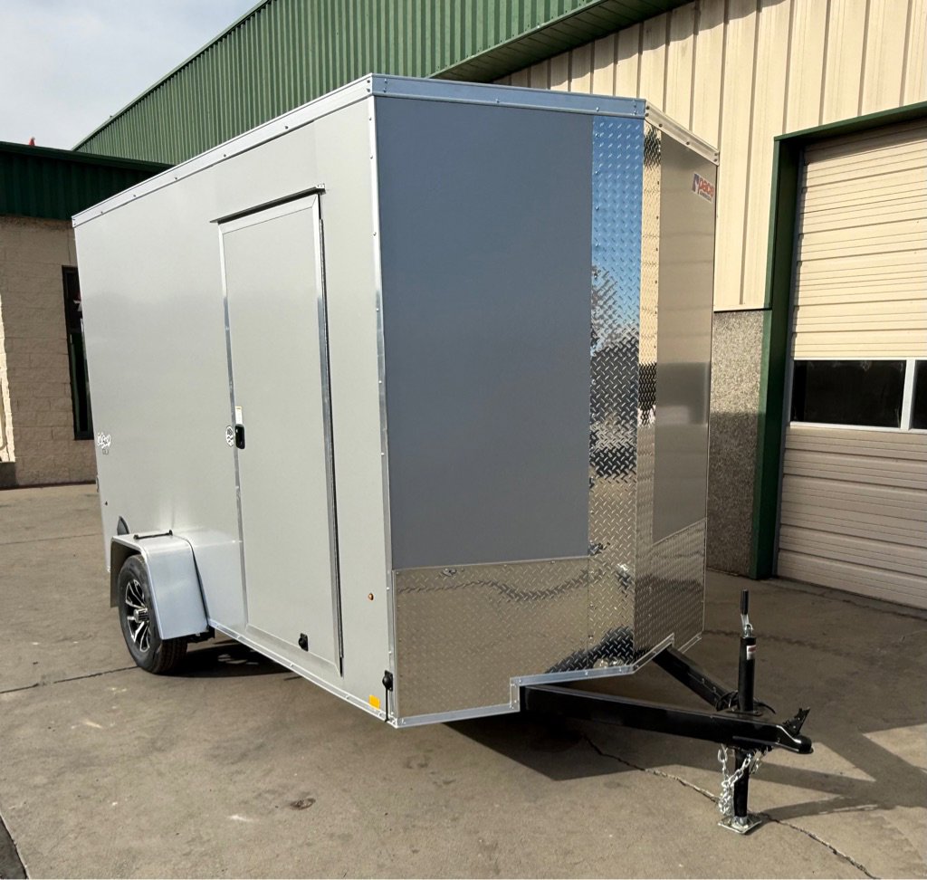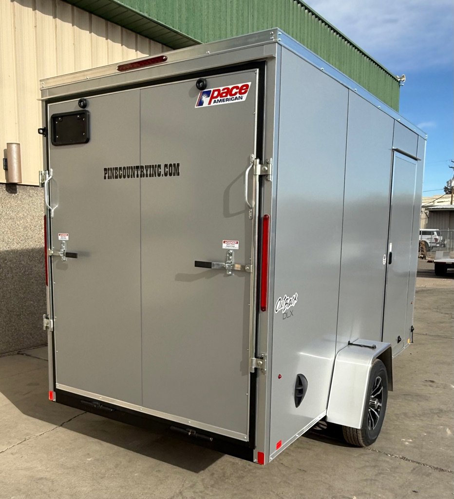 2026 Pace 6’x12′ Single Axle Enclosed Trailer, 7′ Interior Height, White Composite Skin, Aluminum Wheels, Side Wall Flow Through Vents, 12-Volt Interior Light, Cable Assisted Rear Ramp Door, Side Access Door, 3500 pound Axle, 15 Radial Tires, All LED Lighting, Aluminum Tread Plate Stone Guard. Upgraded Roof Bows To 16 On Center, Light Lid Translucent Roof