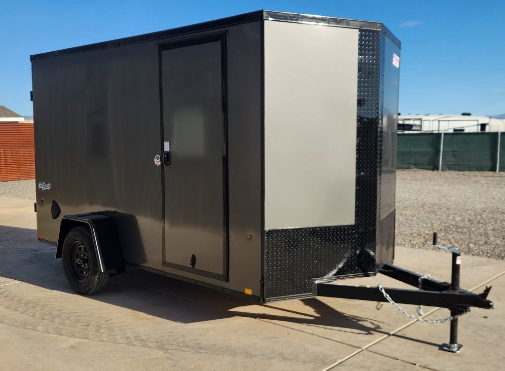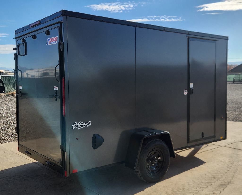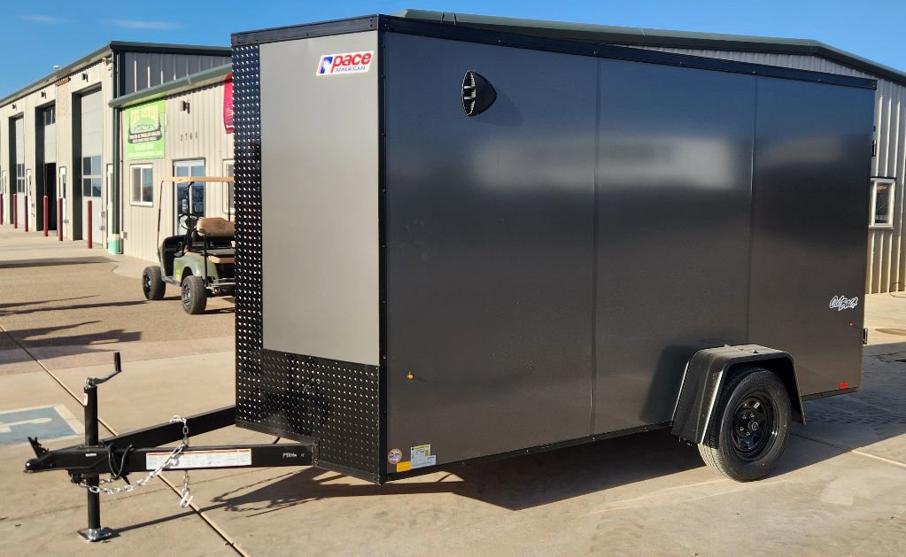 2026 Pace 6’x12′ Single Axle Enclosed Trailer, 6-1/2′ Interior Height, Composite Hail Resistant Side Walls, Translucent Roof, 12-Volt Interior Light, Side Wall Flow Through Vents, Black Out Trim Package, Cable Assisted Rear Ramp Door, Side Access Door, 3500 pound Axle, 15 Radial Tires, All LED Lighting, Aluminum Tread Plate Stone Guard.