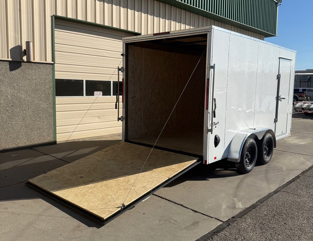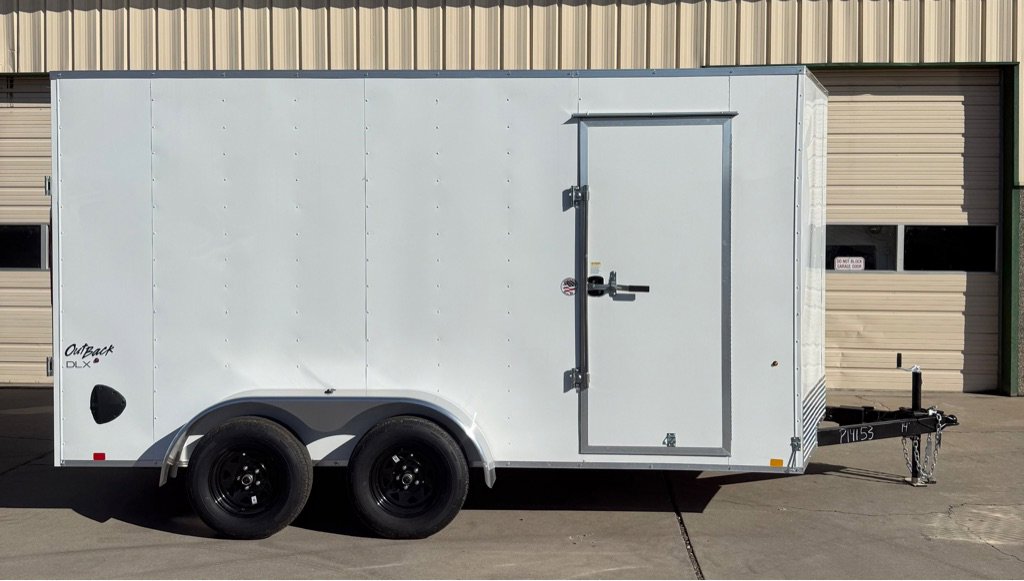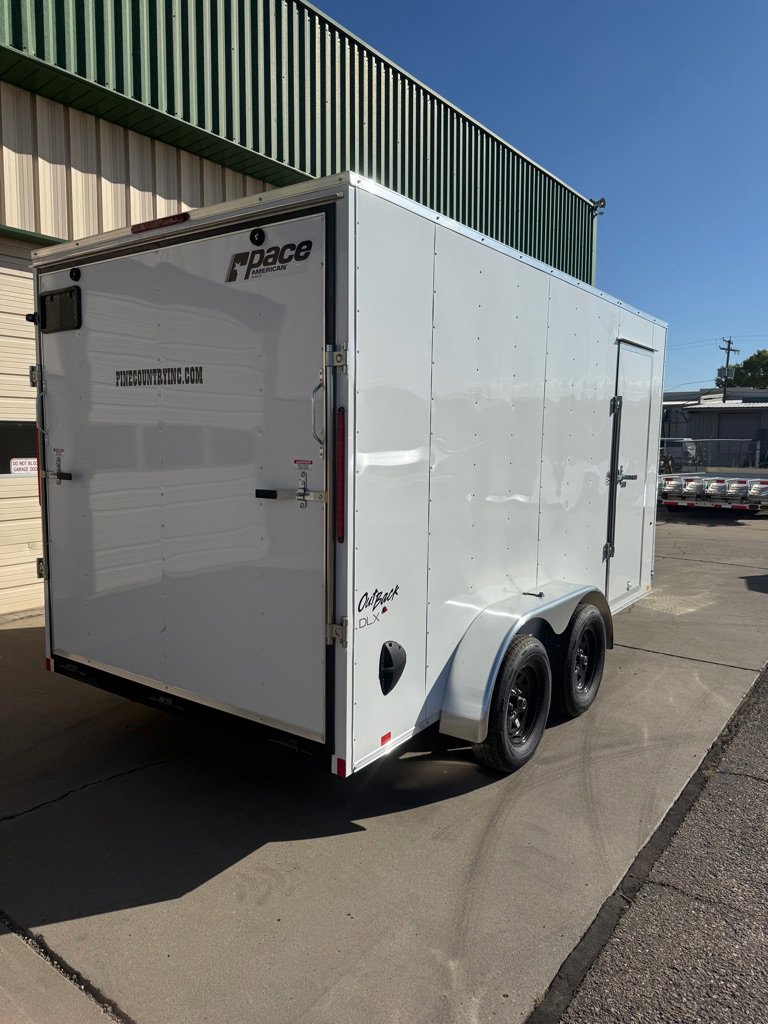 PACE OUTBACK 7 X 14 TANDEM AXLE ENCLOSED TRAILER NEW COMPOSITE SKIN 7K Rated, V-Nose, Cable Assisted Rear Ramp Door, Side Access Door, ATP Front Stone Guard, All LED Lighting, 7 Foot Interior Height, Dry Max Flooring, 15 Inch Radial Tires, Electric Brakes On All Wheels, Side Wall Flow Through Vents, 12-Volt Interior Dome Light. Empty Weight 1995