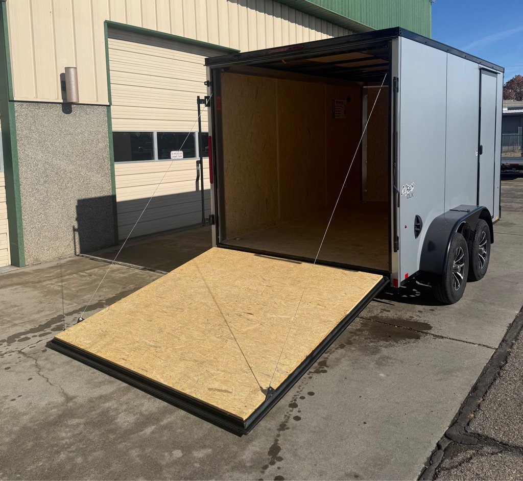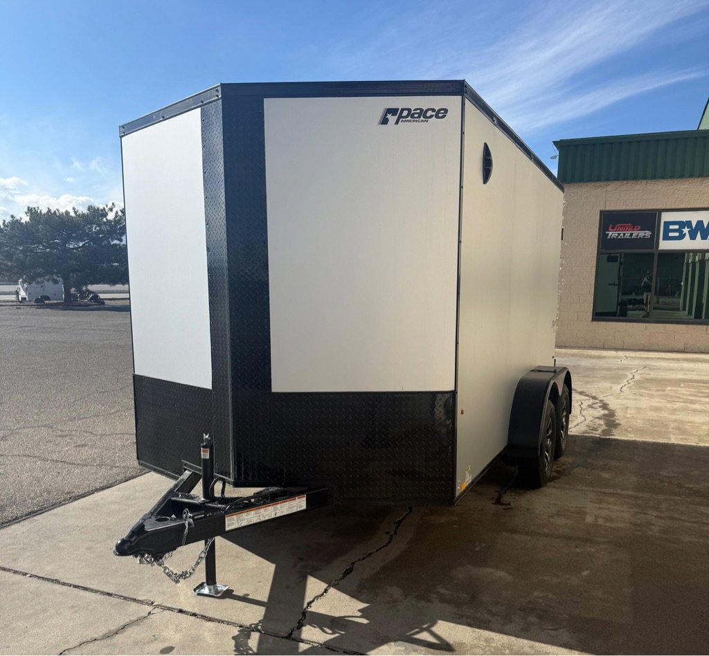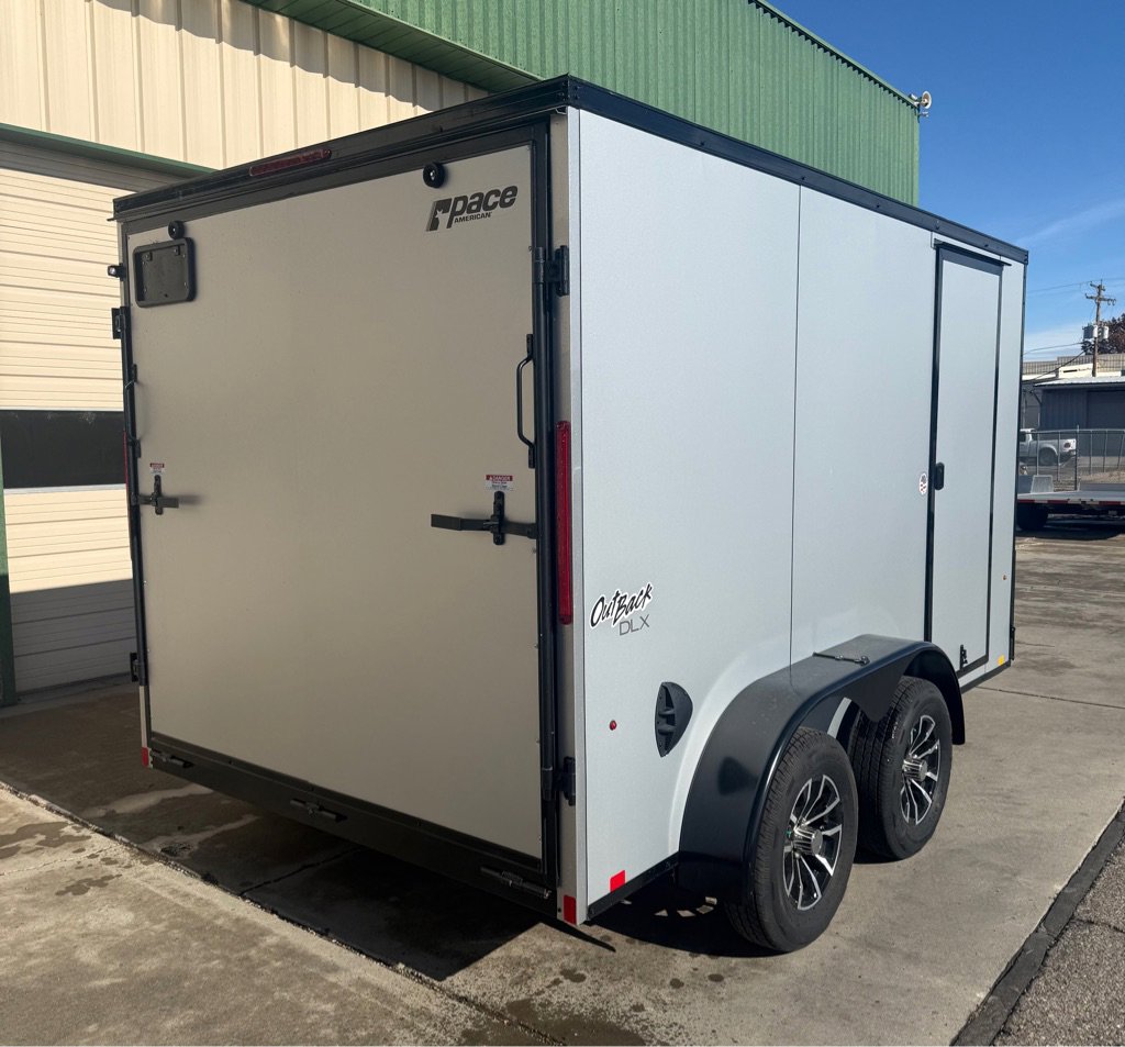 PACE OUTBACK 7 X 12 TANDEM AXLE ENCLOSED TRAILER, 7K Rated, V-Nose, Cable Assisted Rear Ramp Door, Side Access Door, ATP Front Stone Guard, All LED Lighting, 7 Foot Interior Height, NEW Composite Side, , Dry Max Flooring, Roof Vent, 15 Inch Radial Tires, Electric Brakes On All Wheels, Side Wall Flow Through Vents, 12-Volt Interior Dome Light.